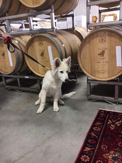 Well, they had me at hello at the Fox Hollow Vineyards. To be specific, Frederic, the winery’s handsome Berger Blanc Suisse (shepherd dog) got my attention as I walked through the door, sitting at the feet of his master, Joe Casola, the winemaker and vineyard manager. A winery dog is a wonderful thing!